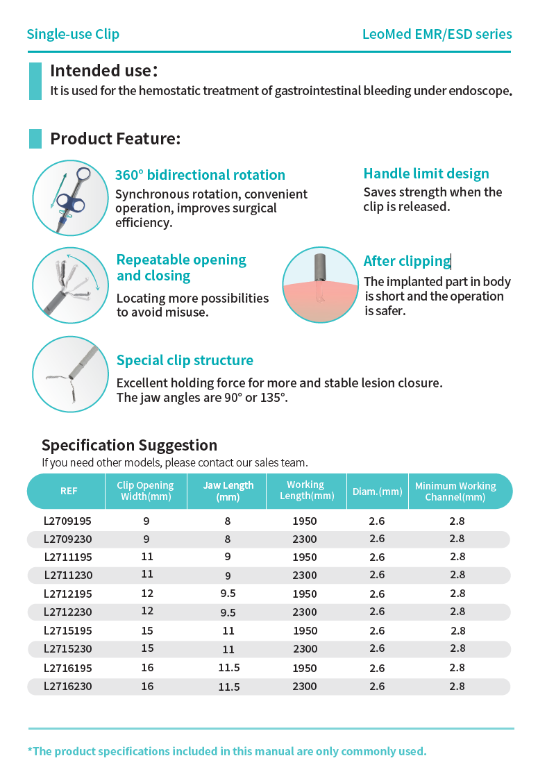 It is used for the hemostatic treatment of gastrointestinal bleeding under endoscope.